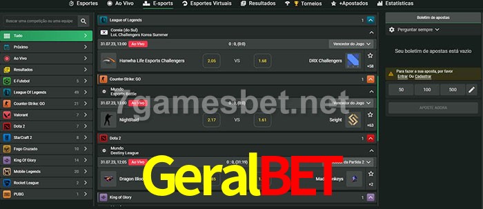 O Geralbet oferece uma grande seleção de opções de apostas em e-sports com probabilidades competitivas